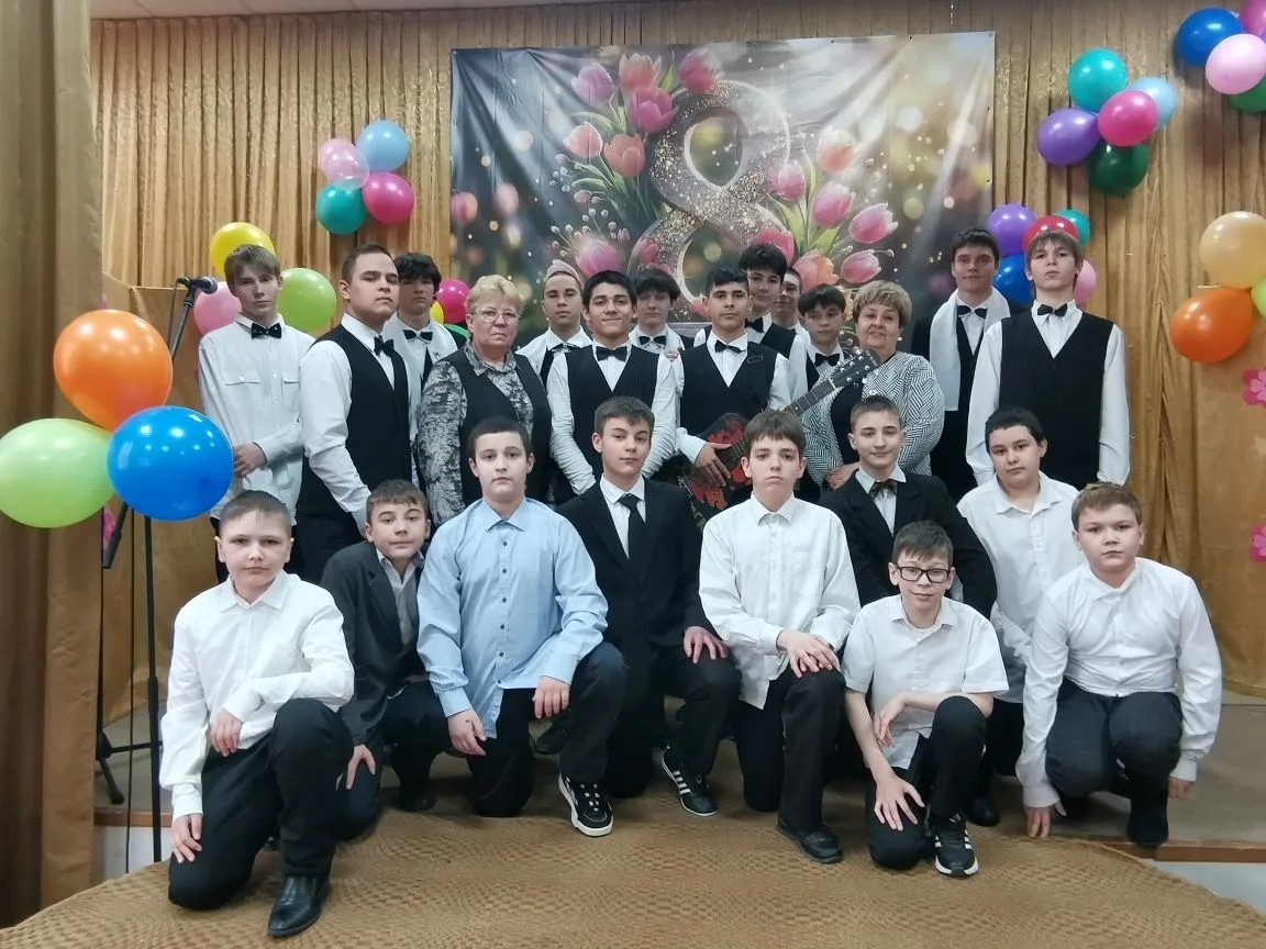 5 марта в канун Международного женского дня юноши таганрогского филиала горячо и сердечно поздравили девушек и женщин с наступающим праздником. Поздравление получилось очень ярким и оригинальным. В концерте участвовали в основном мальчики и юноши. Концерт был сюжетно организован вокруг ситуации с потерей подготовленного сценария мероприятия. Мальчишки хотели все сделать сами, но все же пришлось обратиться за помощью к девчонкам, которые занимаются в нашей школе в танцевальной студии. Девочки исполнили зажигательный танец. Женщин поздравляли и подарили им музыкальное поздравление юноши 5,6 и 7 класса. От имени старшеклассников виновниц торжества поздравили члены «Клуба джентльменов». Особой страницей праздничного концерта стал видеофильм, героинями которого стали девушки и женщины филиала. В конце праздника юноши подарили всем женщинам виртуальные «цветы» под песню в исполнении ученика 9 класса Новикова Даниила и его гитары. Все присутствующие в лице руководителя филиала Булоховой Натальи Станиславовны поблагодарили участников концерта за подаренные эмоции, а также педагогу дополнительного образования Фроловой Наталье Владимировне за организацию концерта.