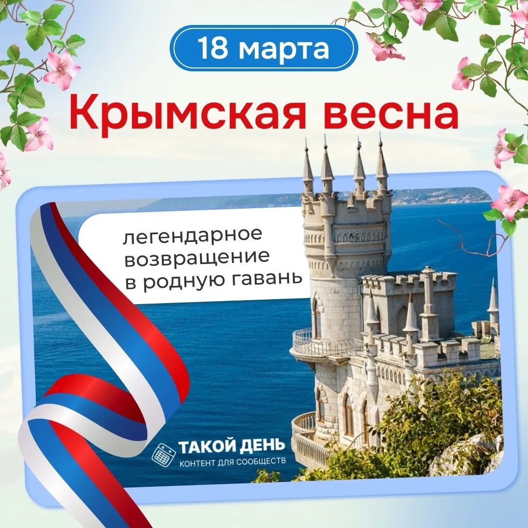 16 марта в фойе филиала состоялась торжественная линейка, посвященная знаменательно дате в современной истории России – дню присоединения Крыма. Учитель истории и обществознания Мойсеенко Валентина Николаевна провела эту линейку для всех обучающихся и педагогов филиала. Она рассказала, что 12 лет назад на основании доброй воли граждан, проживающих на территории Крыма, было принято историческое решение о присоединении к Российской Федерации. Свое мнение по этому судьбоносному вопросу граждане выразили во время проведения референдума. 18 марта 2014 года президент Российской Федерации