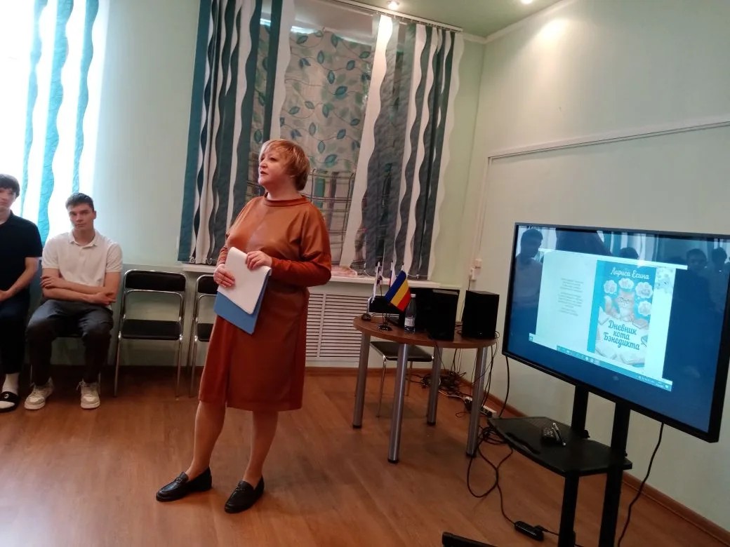7 апреля 2026 года в Таганрогском филиале состоялась встреча с Членом Союза писателей России, дважды лауреатом Международной национальной литературной премии «Золотое перо России» Ларисой Анатольевной Есиной. Лариса Анатольевна является автором четырех поэтических сборников и романов. Автор познакомила ребят со своей новой книгой «Рассказы кота Бенедикта». В ходе беседы она рассказала о том, что же натолкнуло ее на написание этого произведения, о своей любви к котикам. Автор поведала о том, какую роль играли коты в жизни великих писателей м в жизни наших бойцов на передовой специальной военной операции. Были также продемонстрированы видеоролики песнями на слова Л. Есиной. В завершении встречи Лариса Анатольевна провела с ребятами литературную викторину, посвященную этим ласковым животным.