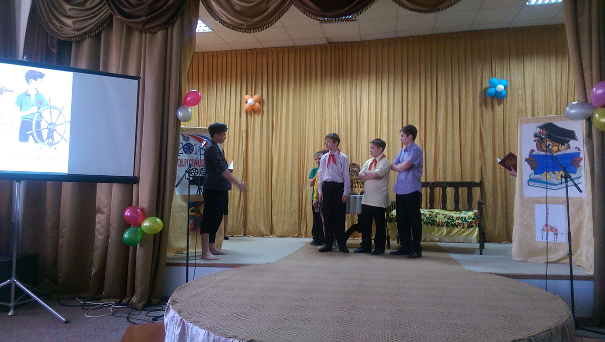 На сцене оживали герои знаменитых произведений знаменитых авторов: Тимур и его команда Аркадия Гайдара, Артёмка И. Д. Василенко, Мишутка из рассказа «Нахалёнок» М.А. Шолохова и Митя из рассказа А.П. Чехова «Радость».
