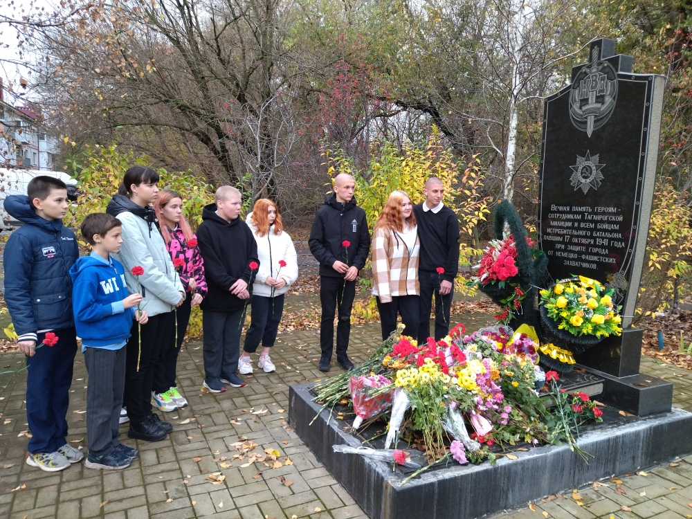 8 ноября в России отмечают  День памяти погибших при выполнении служебных обязанностей сотрудников органов внутренних дел РФ. В Таганроге этот памятник находится у лесополосы по ул. Шаумяна, 10. Для обучающихся нашей школы это стало традицией – возлагать цветы и вспоминать погибших милиционеров при обороне Таганрога в 1941 году, и тех, кто отдал свои жизни в мирное время, встав на пути преступлений и беззакония.