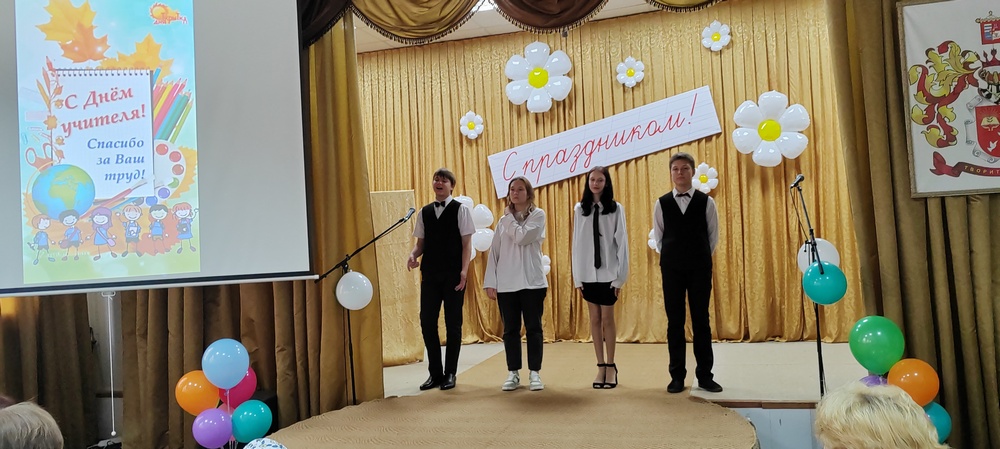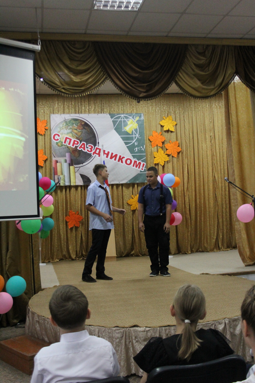 Творческие коллективы школы постарались сделать для педагогов интерната этот день ярким и запоминающимся. С самого утра учителей встречала веселая музыка и красочно оформленное фойе: выставка прикладного творчества учащихся школы (руководители объединений Сазоненко Е.А., Коркуленко С.И.), в зоне «Помнишь, как всё начиналось?» были размещены школьные альбомы с фотографиями с 1991 года; на театральной тумбе размещались фотографии педагогов и сотрудников шуолы. На перемене педагоги и ребята могли посмотреть видеофильмы о школе прошлых лет, а специальный выпуск школьной газеты «Наша жизнь», был полностью посвящен Международному дню учителя и 60-летнему юбилею школы. Кульминацией этого дня стала театрализованная программа с участием творческих коллективов и педагогов школы-интерната. Гости и ветераны педагогического труда по завершению программы выражали слова благодарности и искреннего восторга. Праздник удался!