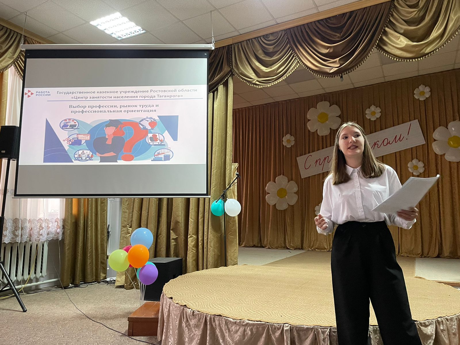 Специалистом центра занятости было рассказано о работе цифровой платформы «Работа России», где можно узнать много нового о профессиях, о востребованности их на рынке труда. Обучающиеся получили сведения о работе Кадрового центра "Работа России" города Таганрога, который является центром оказания помощи обратившимся гражданам в профессиональном самоопределении, выборе профессии для успешного трудоустройства или прохождения профессионального обучения.