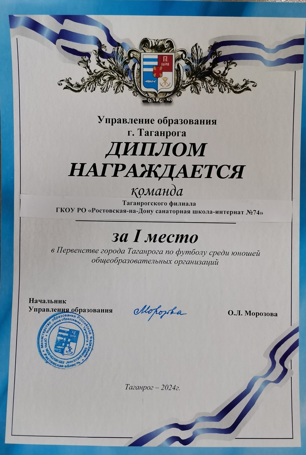 16 по 23 мая 2024 года согласно плана работы Управления образования города Таганрога и в целях популяризации футбола и здорового образа жизни, профилактики правонарушений и преступлений среди несовершеннолетних, привлечения детей к активным занятиям спортом было проведено первенство города по футболу среди юношей общеобразовательных организаций. Впервые команда нашей школы принимала участие в подобных соревнованиях. Дебют оказался успешным! Наши мальчишки – учащиеся 7-9 классов, во главе с тренером Тимошенко Н.А., заняли первое место! Поздравляем футбольную команду нашей школы и надеемся на дальнейшие победы!